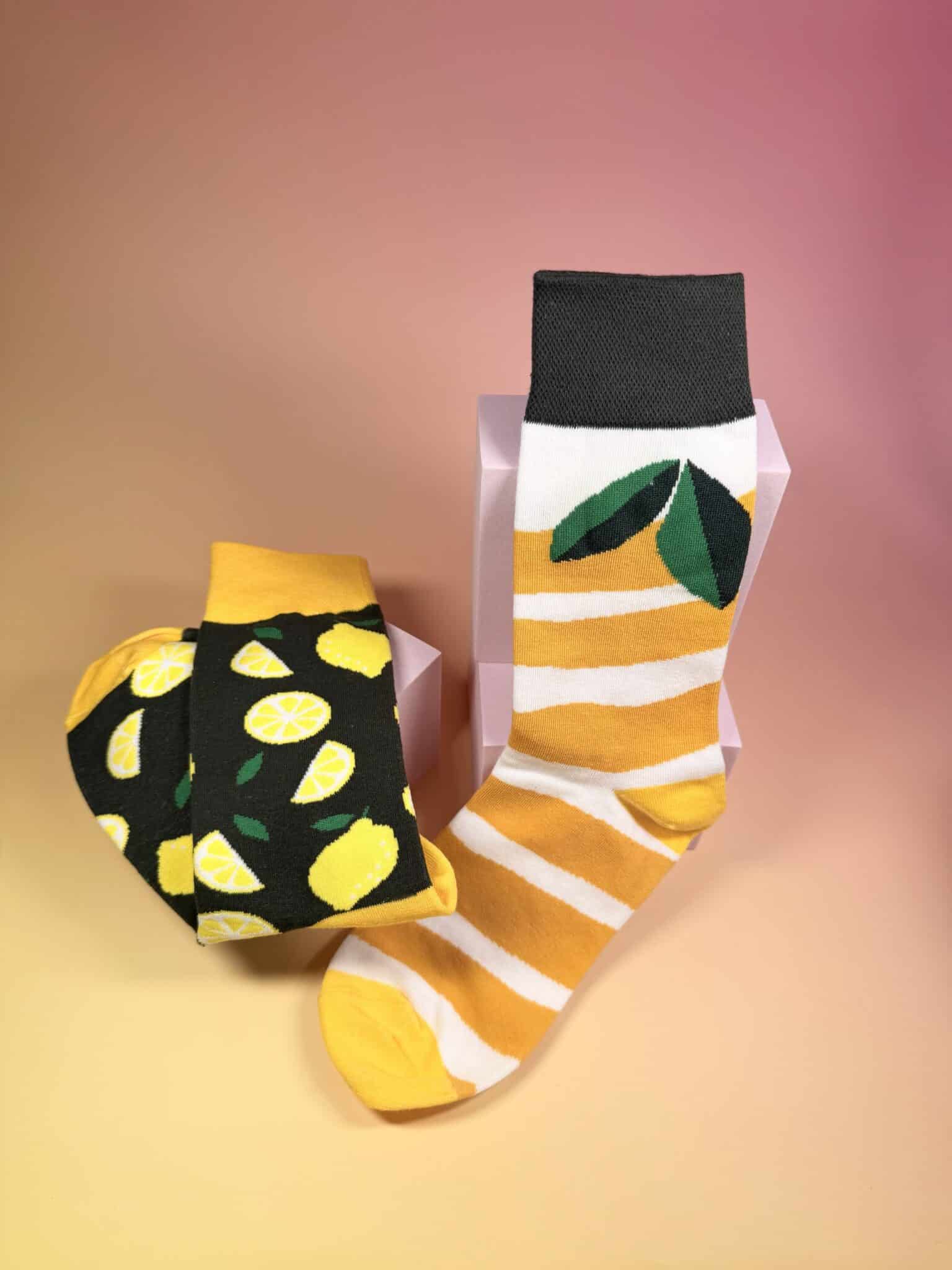 Chaussettes dépareillées à motifs citron, fraîches et pleines de pep’s, idéales pour apporter une touche ensoleillée à ton look.