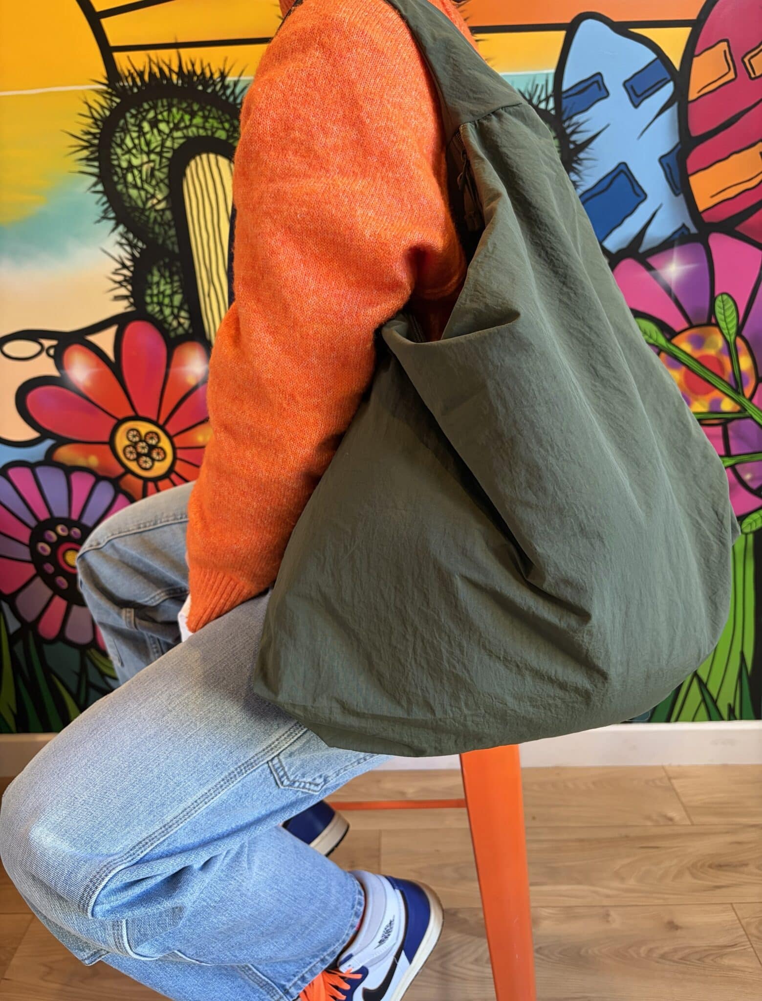 Ce sac vert kaki est l’accessoire idéal pour ajouter une touche de couleur et de praticité à ton quotidien. Léger, souple et très confortable à porter, il offre une grande capacité tout en restant facile à plier et à transporter. Son tissu résistant et sa coupe ample en font un compagnon parfait pour les courses, le sport, la plage ou les sorties de tous les jours.